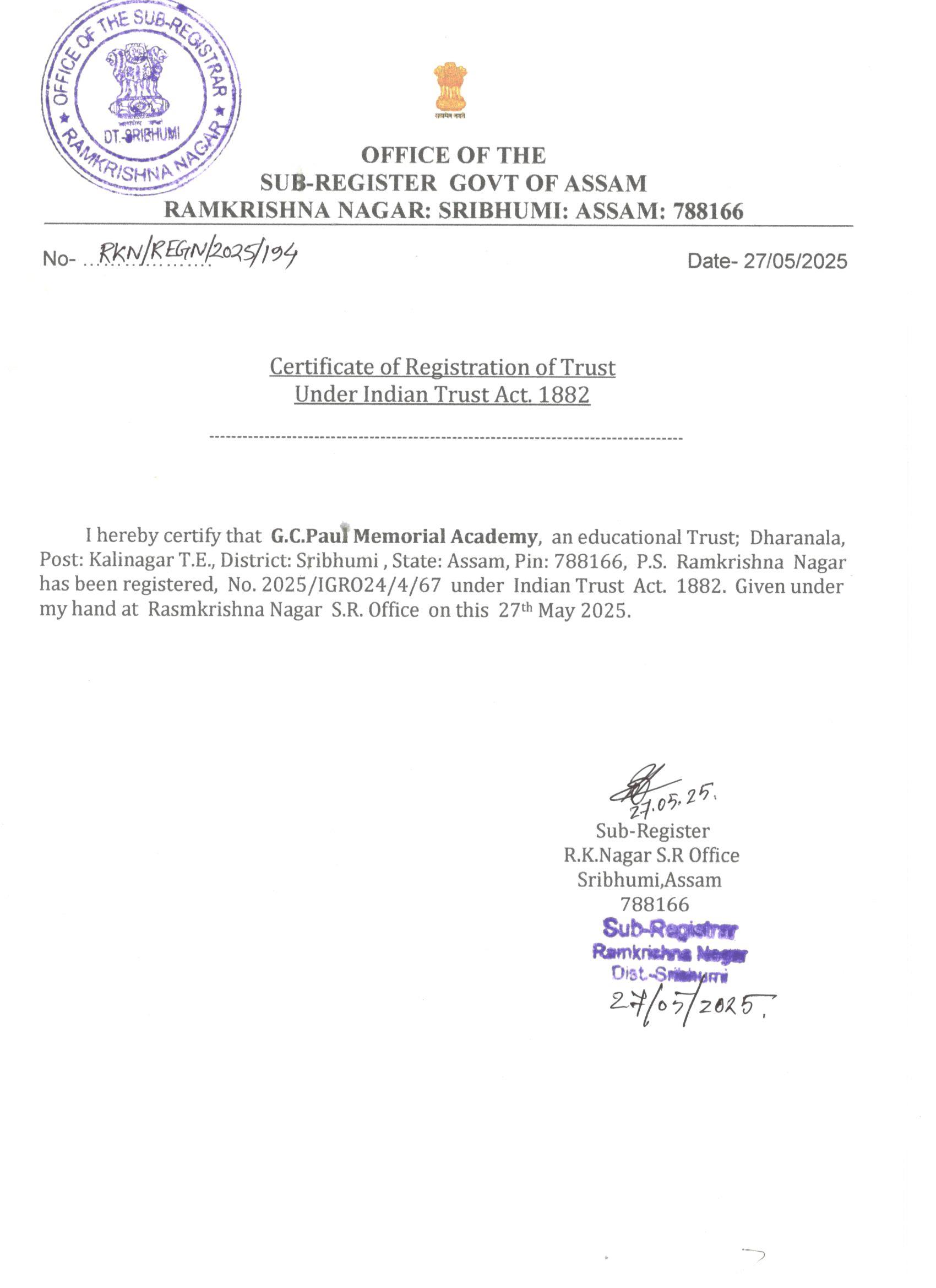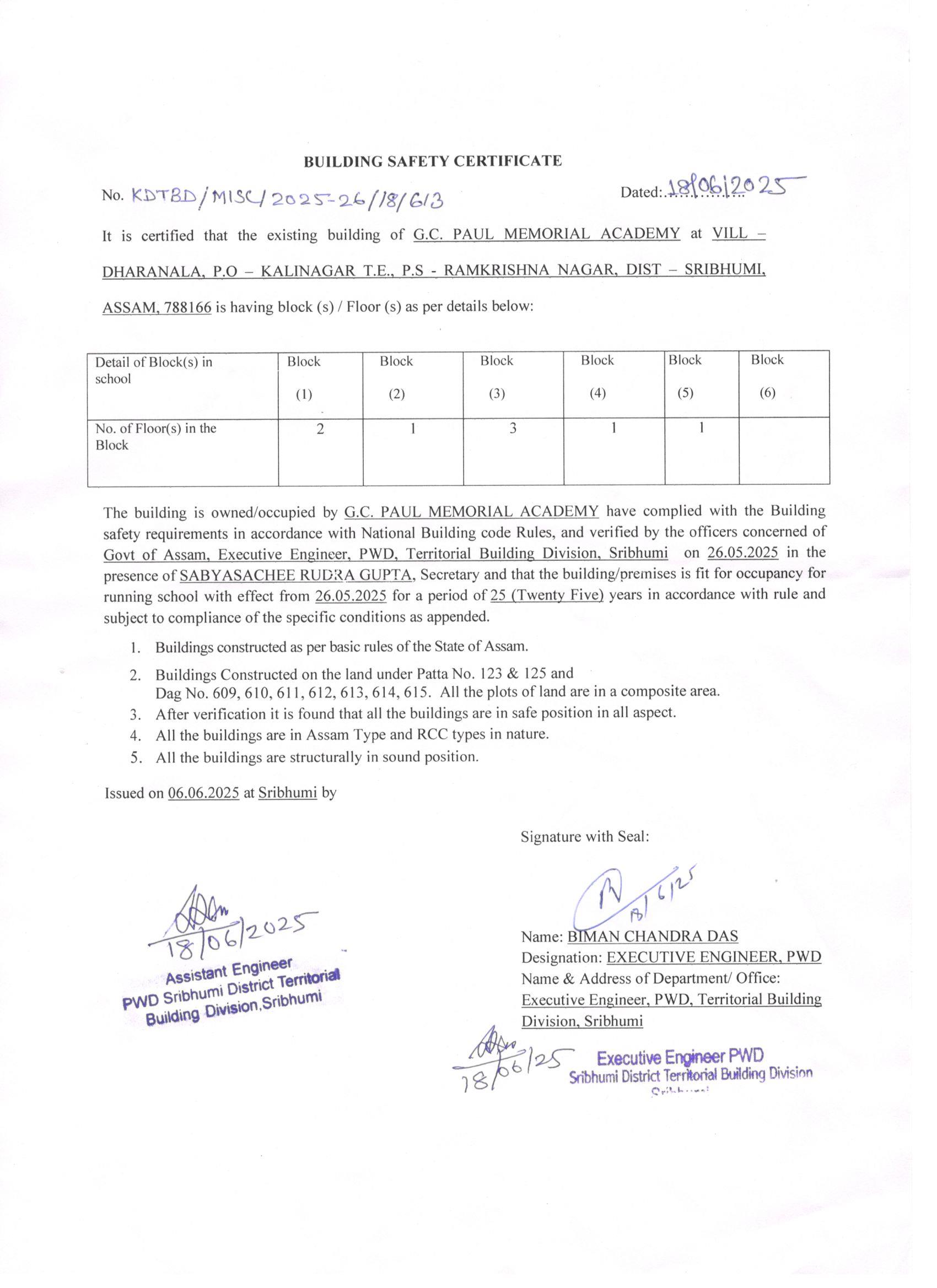 | 1 | NAME OF THE SCHOOL | G.C. PAUL MEMORIAL ACADEMY |